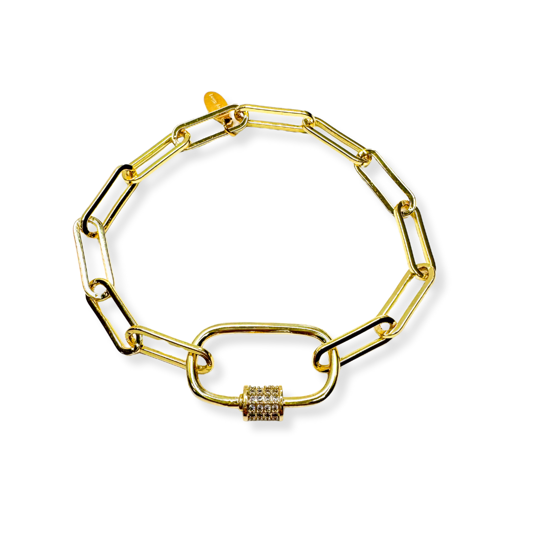 CZ Gold Carabiner Clasp Paperclip Charm Bracelet