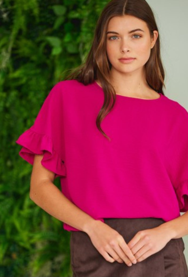Lucid Dream Ruffle Neckline Blouse in Navy