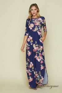 Navy & Mauve Floral Maxi