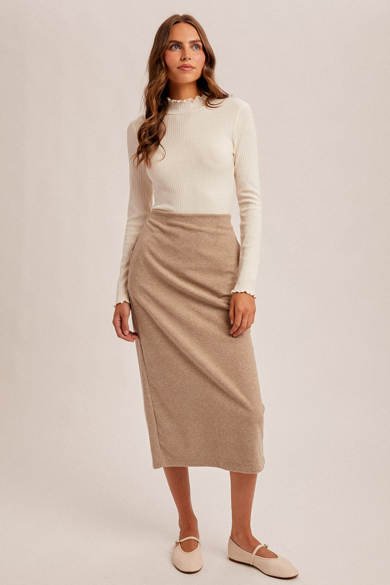 Taupe Textured Midi Skirt