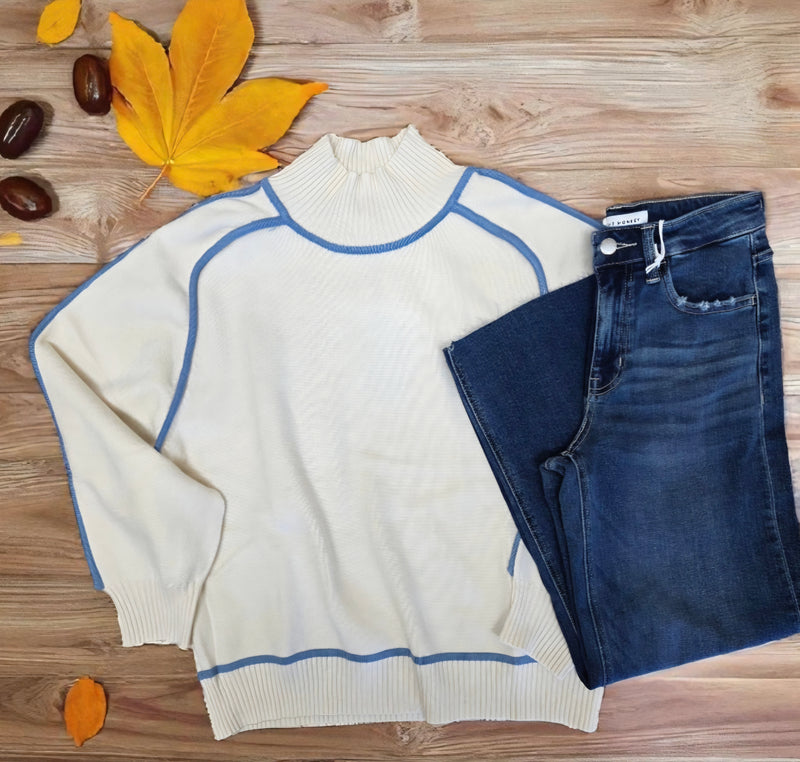 Cream & Blue Stitch Sweater