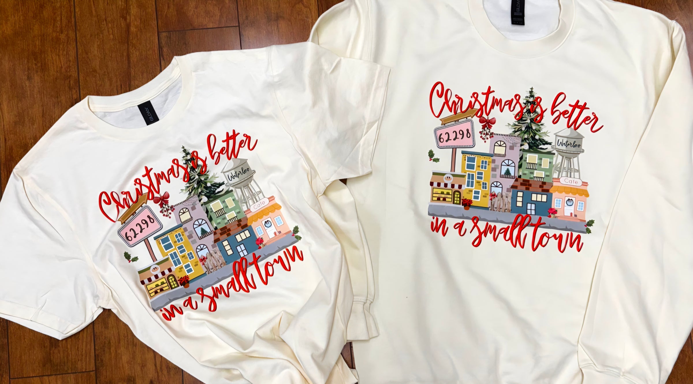 Christmas is Better in a small town is printed on unisex sweatshirt.