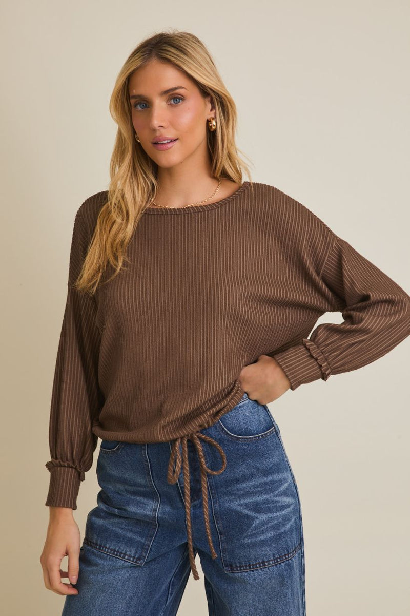 Mocha Drawstring Top